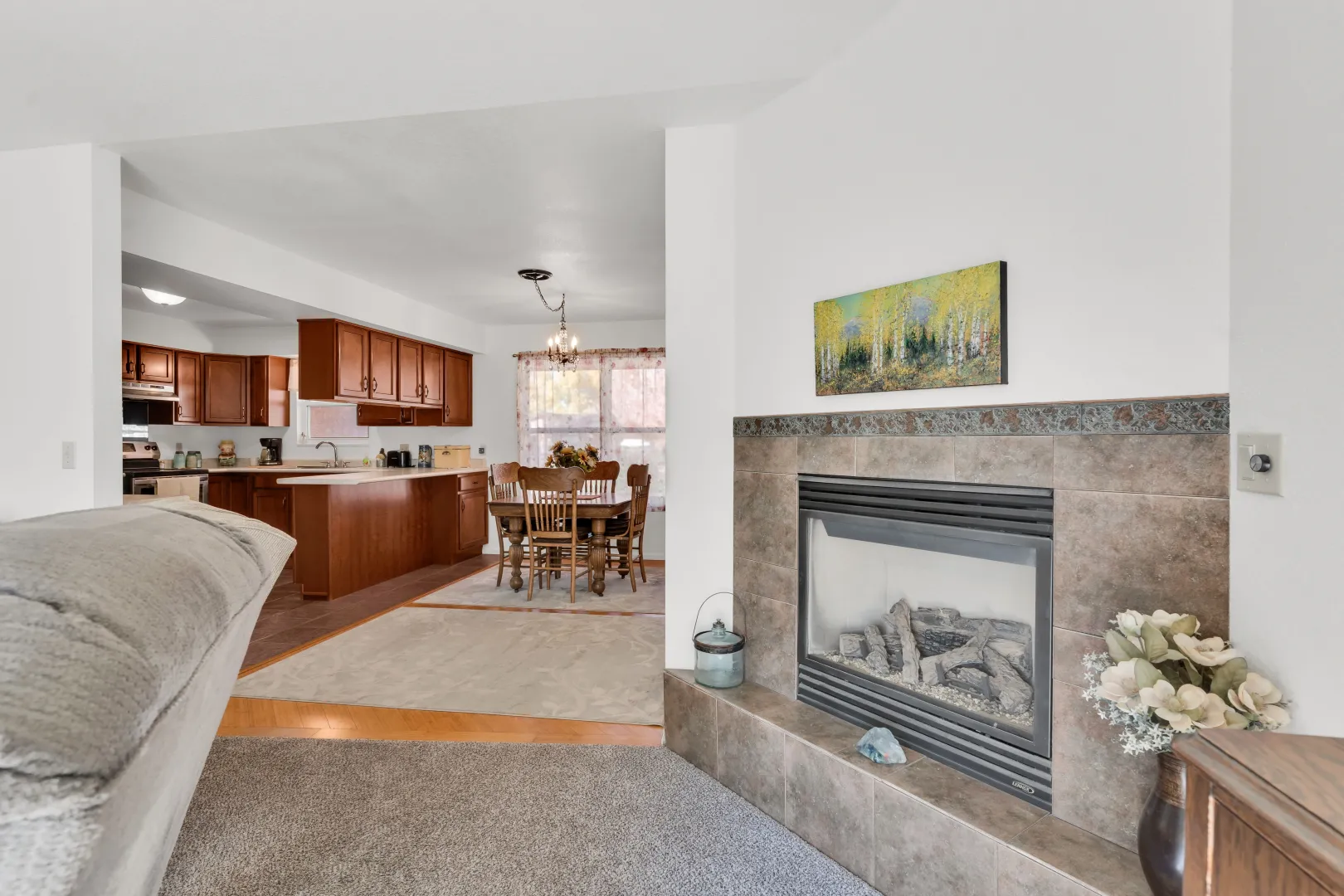 Absolutely spotless, and recently remodeled split bedroom floor plan home with cathedral ceilings, an open design, and beautiful Bamboo flooring. Spacious living room with a gas fireplace. A full separate dining room, and a Great kitchen with a breakfast bar, lots of dove-tailed cabinets, a pantry, and an ample amount of counter space. Big master suite with cathedral ceilings, a walk in closet, and a large master suite with a walk in shower. Setting on professionally landscaped lot with a sprinkler system, this home has a fenced back yard with views onto a lush farm field. Fenced yard, no maintenance deck, mature trees, and a storage building. New roof 2025, 12 panel solar system making you electric bills only about $10.00 per month! All new heating, cooling, and plumbing!! You'll love the front yard and the covered front patio. Heated and finished garage.